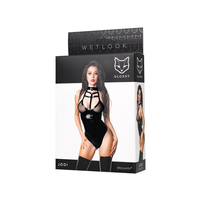El seductor y seductor body Jodi tiene un diseño exquisito, mezclando la gracia de una sexy malla transparente y el juego apasionado de un arnés de imitación en el escote. Las inserciones de malla transparente no ocultan la forma, sino que, por el contrario, la enfatizan, dejando visibles los detalles íntimos del pecho.