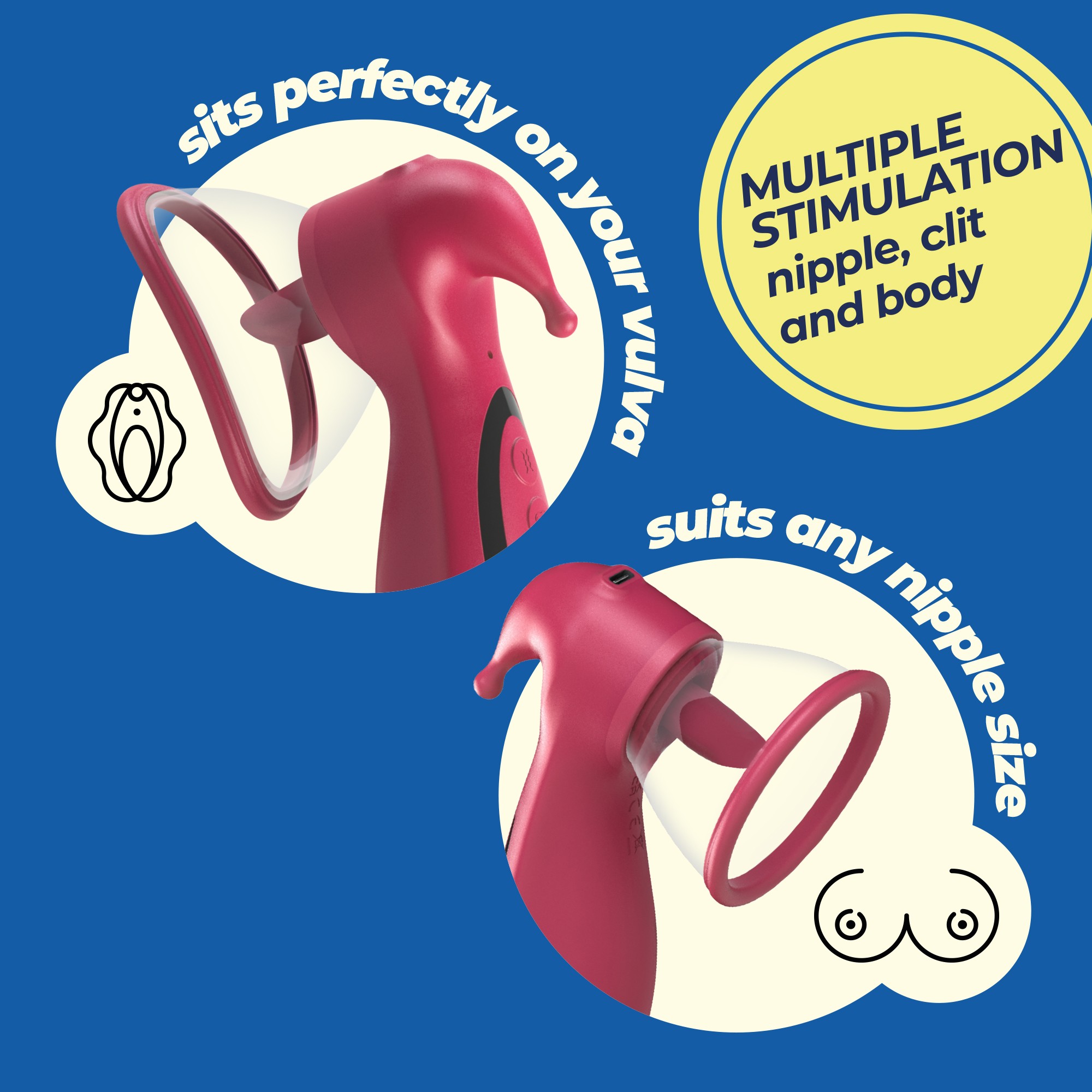 Sabías que aumentar el flujo sanguíneo en las zonas erógenas incrementa el placer exponencialmente? Una bomba es la mejor forma de alcanzar esa increíble sensación, ¡y Saci está aquí para llevarte hasta allí! Sus 2 copas extraíbles son perfectas para que las utilices en la vulva y los pechos. Recorre los 7 increíbles modos de succión y selecciona el que más te convenga. ¿Quieres aún más placer? Activa sus modos de lamido y alterna entre las 3 velocidades y los 7 modos.¿No es suficiente para ti? Prueba su vibración para una estimulación directa y disfruta de los 7 modos diferentes con 3 velocidades.