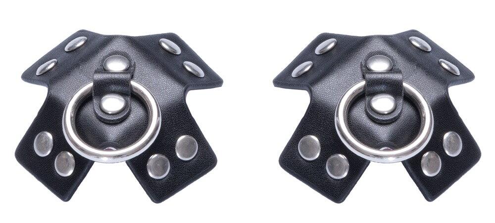 Nipple Sticker SM de Cottelli ACCESSOIRES como una clásica cruz negra de elegante piel sintética con adornos de tachuelas y anilla (para el tobillo). Para pegar – se puede utilizar varias veces si la película protectora se pega de nuevo para el almacenamiento.