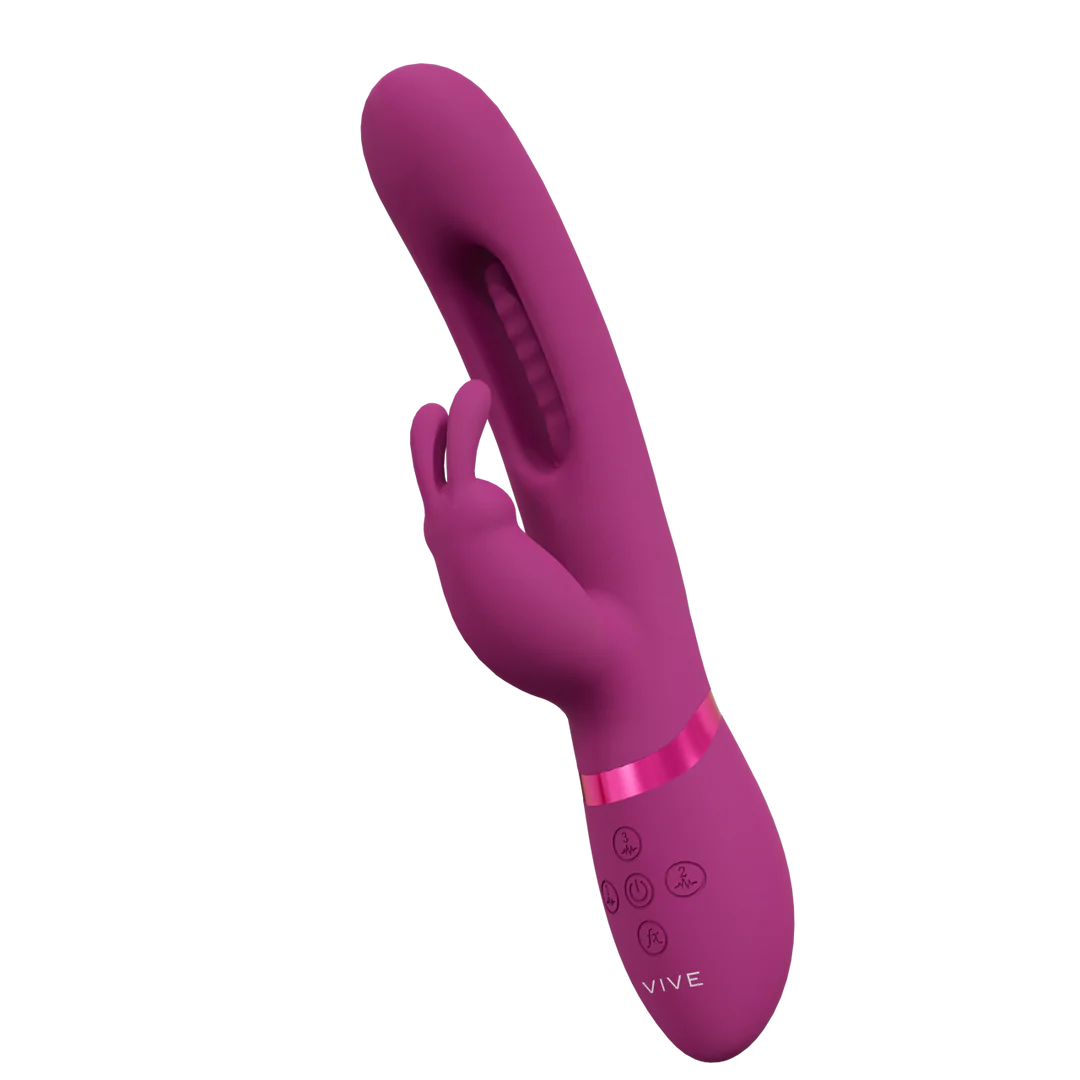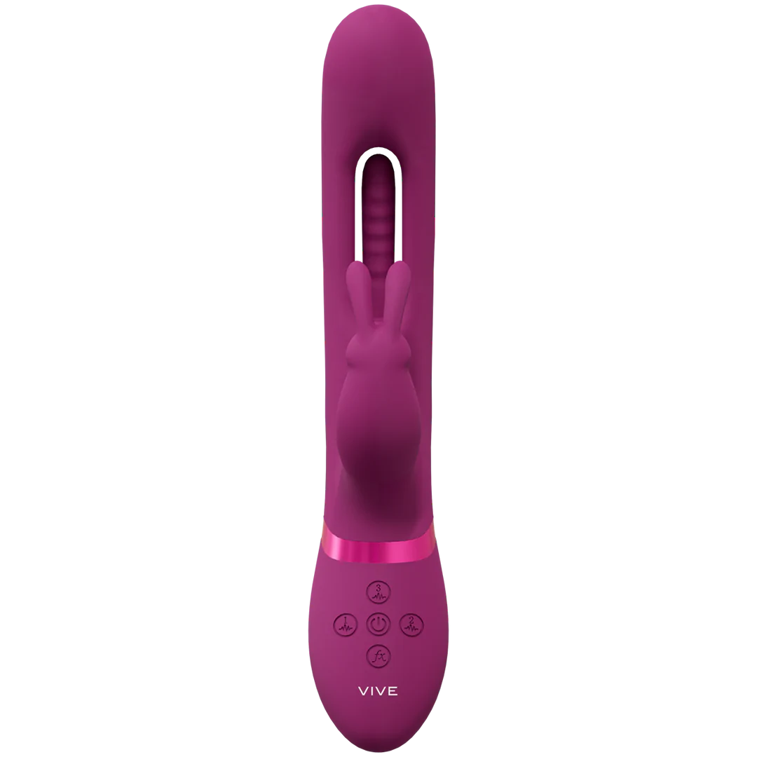 El diseño único del vibrador MIKA Flapping Tongue Rabbit VIVE057 lo distingue de otros dispositivos. Tres motores F1 de nueva generación, con 10 velocidades y funciones, controlados independientemente, impulsan este vibrador de hermoso diseño. Incluye una función de motor para el punto G con lengua, una punta vibratoria y una función Rabbit para el clítoris externo. Con más de 1000 combinaciones diferentes, este juguete te llevará a lugares inimaginables.